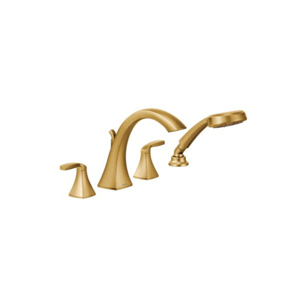 Voss Brushed gold two-handle high arc roman tub faucet includes hand shower
